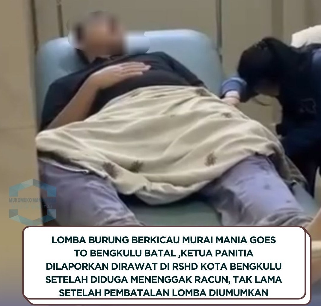 Sementara itu, beredar informasi mengejutkan bahwa lomba bertajuk Murai Mania Goes to Bengkulu yang rencananya digelar di Lapangan Sungai Suci tersebut mendadak dibatalkan. Pembatalan ini disebut terjadi setelah ketua panitia diduga menenggak racun dan saat ini dirawat di RSHD Kota Bengkulu.